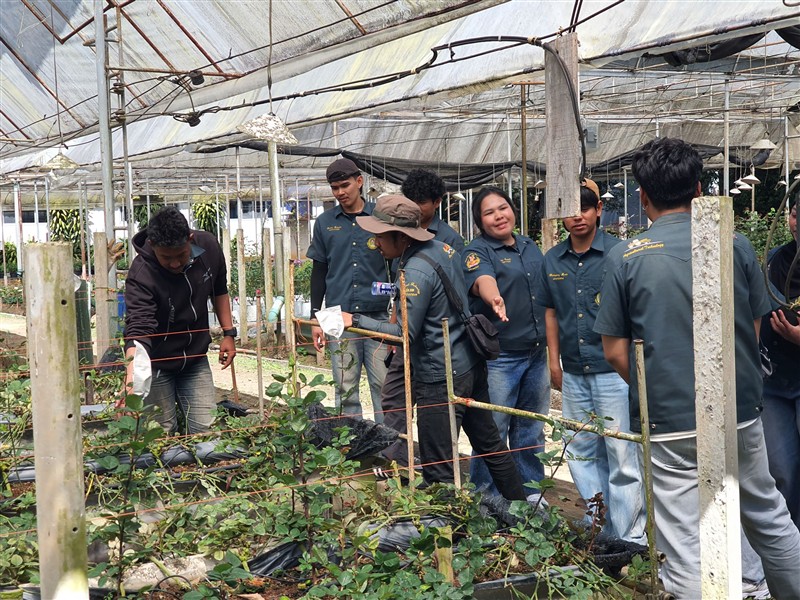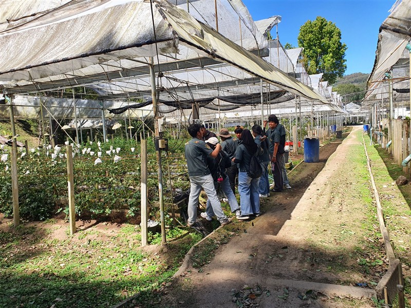 วันที่ 12 กุมภาพันธ์ 2569 ฟาร์มมหาวิทยาลัย มหาวิทยาลัยแม่โจ้ นำนักศึกษาฝึกงานจากมหาวิทยาลัยราชภัฏสงขลา ศึกษาดูงาน เข้าศึกษาดูงานมูลนิธิโครงการหลวงเชียงใหม่ สถานีเกษตรหลวงอินทนนท์ ด้านการผลิตดอกไม้เมืองหนาว อาทิ กุหลาบ เยอบีร่า ด้านการผลิตไม้ผลเมืองหนาว ท้อ (พีช) อะโวคาโด หม่อน (มัลเบอร์รี่) สาลี่ ทั้งนี้ นักศึกษายังได้เข้าเยี่ยมชม สวนเฟิร์นสิริภูมิ ซึ่งแหล่งรวบรวมเฟิร์นกว่า 50 สกุล 140 ชนิด อาทิ กูดต้น เฟิร์นก้านดำ และเดินชมเส้นทางธรรมชาติระยะทางกว่า 600 เมตร ผ่านสวนเฟิร์นและน้ำตกสิริภูมิ ณ อุทยานแห่งชาติดอยอินทนนท์
